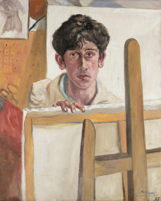 La vie de Boris Taslitzky est marquée par les grands bouleversements historiques du XXe siècle qui ont fait de son œuvre un travail éminemment politique. Si les dessins et les peintures engagés qu’il a réalisés ont fait sa notoriété, sa production de portraits, pourtant foisonnante, est une facette moins reconnue de l’artiste. Ce dernier est auteur de plus d’une vingtaine d’autoportraits, peints ou dessinés, dont L’autoportrait au chevalet, datant de mars 1925 qui vient de rejoindre les collections du musée. Le tableau, réalisé alors qu’il n’avait que quatorze ans, témoigne déjà d’une grande maîtrise artistique. La « présence » de l’auteur-modèle, renforcée par le regard hypnotisant de ce dernier, instaure une forme de dialogue visuel entre le visiteur et l’artiste, presqu’une relation intime.