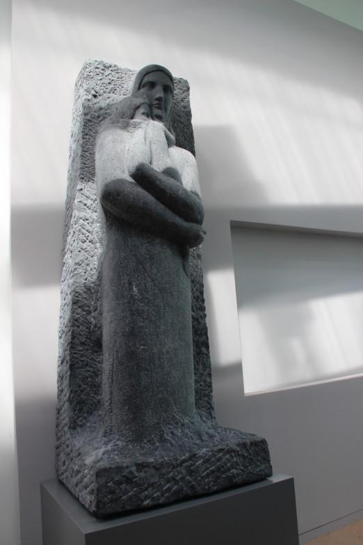 La Maternité de Georges Minne a nécessité de gros moyens puisqu’elle pèse 2.3 tonnes. Ainsi, un échafaudage a été installé et une panoplie de câbles et cordes a dû être minutieusement placée autour de l’impressionnante sculpture pour la soulever et la poser sur son socle dans la nouvelle Galerie de sculptures. Sculpteur symboliste, l’artiste belge Georges Minne (1866 – 1941) recherchait dans ses œuvres la sobriété des lignes et trouve son une inspiration dans l’art médiéval, comme le traduit parfaitement la Maternité.