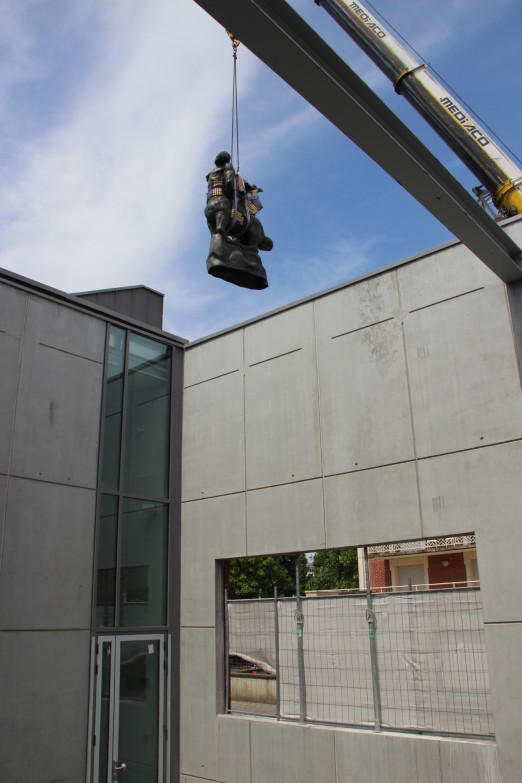 Quant au Centaure mourant en bronze d’Antoine Bourdelle (1861-1929), du fait des dimensions impressionnantes (860 kilos et presque 3 mètres de haut), il a dû être soulevé dans les airs à plus de 6 mètres de haut pour être déposé dans le patio de sculpture. Il a alors été sorti de sa caisse directement dans la rue, puis soulevé à la grue par-dessus le mur d’enceinte du musée pour atterrir directement dans son lieu d’exposition. Au début de sa carrière, Antoine Bourdelle a collaboré de nombreuses années avec Auguste Rodin. Il s’affranchira du maître pour se rapprocher de la sculpture antique ou médiévale comme ici avec Le Centaure mourant qui traduit en trois dimensions une fresque réalisée pour le Théâtre des Champs-Elysées, La Mort du dernier centaure.