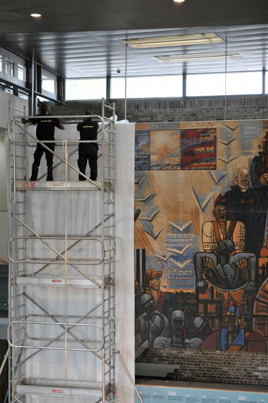 Préparation des percements des murs : les œuvres sont mises à l’abri. | Info Travaux : On emballe le Gromaire !
