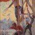 A priori peinte en 1907, emblématique de la sensibilité aux difficultés de la vie ouvrière et des convictions anarchistes que partagèrent Signac et Luce, cette composition militante fut reprise par son auteur en 1911 pour illustrer une affiche et une carte postale en faveur de La Bataille syndicaliste. Dans un courrier à son épouse, le peintre-collectionneur affirme son plaisir d’avoir découvert cette « très belle esquisse de Luce, des ouvriers arborant un drapeau rouge en haut d’un échafaudage. Ça vaut un Delacroix, ou un Daumier ».