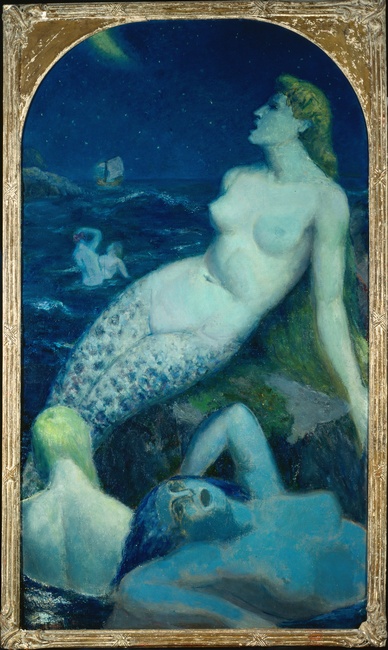 Enfin, La Grande sirène bleue se prélasse jusqu’au 9 septembre au Havre pour l’exposition Né(e)s de l’écume et des rêves au MuMa consacrée aux artistes et la mer au XIXe siècle à nos jours. Une belle lisibilité pour cette toile énigmatique du peintre roubaisien Paul-Alex Deschmacker (1889-1973).