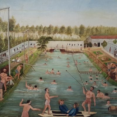 J. Lamotte, Vue d’une piscine en plein air, Huile sur toile J. Lamotte, Vue d’une piscine en plein air, Huile sur toile