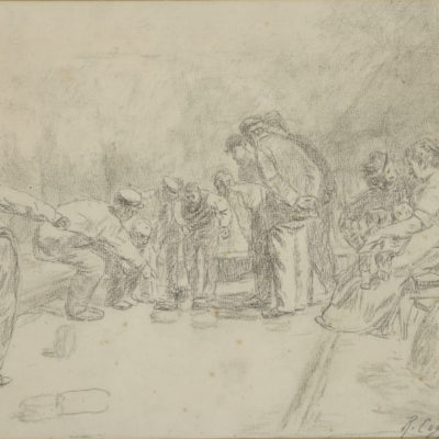 Rémy Cogghe, Jeu de bourles en Flandre française, vers 1897, Fusain sur papier Rémy Cogghe, Jeu de bourles en Flandre française, vers 1897, Fusain sur papier
