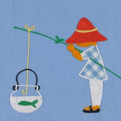 La Cotonnière de St-Quentin Pêcheur au bocal, vers 1950, Broderie sur toile imprimée Don de M. et Mme Prévost La Cotonnière de St-Quentin Pêcheur au bocal, vers 1950, Broderie sur toile imprimée Don de M. et Mme PrévostVoir la collection