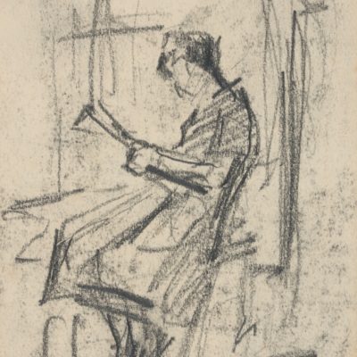 Maurice Maes, Femme assise lisant, 1950, Crayon sur papier Maurice Maes, Femme assise lisant, 1950, Crayon sur papier