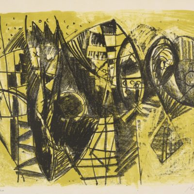 Robert WEHRLIN, Les Sept, 1955, Lithographie imprimée en noir et vert sur papier vélin filigrané Robert WEHRLIN, Les Sept, 1955, Lithographie imprimée en noir et vert sur papier vélin filigrané