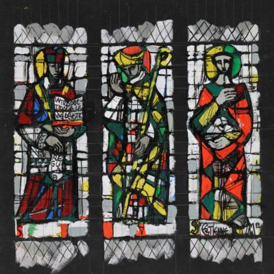 Jacques LE CHEVALLIER, Saint François de Sales. Saint Martin. Saint Etienne. Etude H pour l’un des vitraux du Transept Nord de la collégiale de Dôle Jacques LE CHEVALLIER, Saint François de Sales. Saint Martin. Saint Etienne. Etude H pour l’un des vitraux du Transept Nord de la collégiale de Dôle
