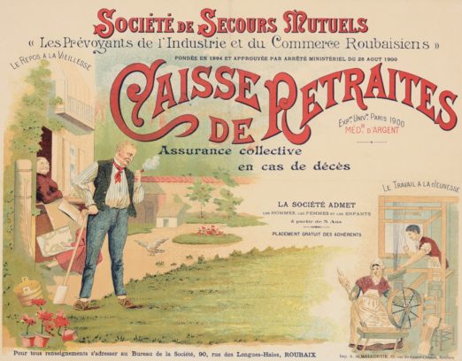 Affiche de la Caisse de Retraites Les Prévoyants de L’industrie et du Commerce Roubaisiens, vers 1900