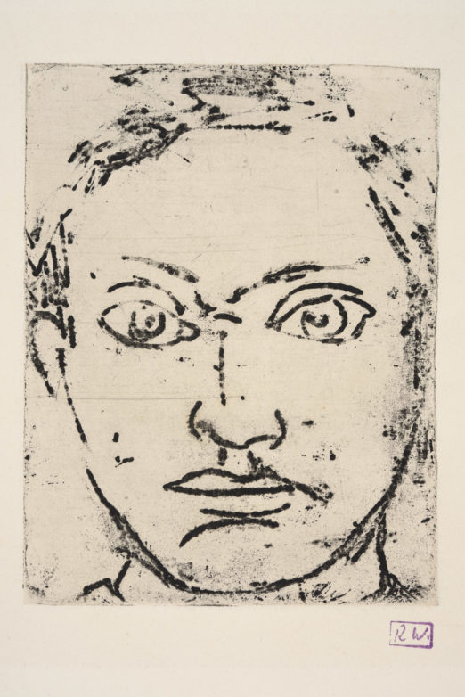 Robert WEHRLIN, Autoportrait, vers 1933, Vernis mou sur papier vélin filigrané