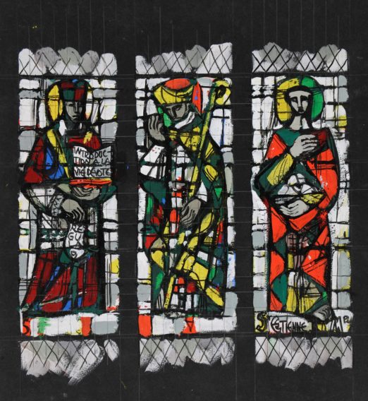 Jacques LE CHEVALLIER, Saint François de Sales. Saint Martin. Saint Etienne. Etude H pour l’un des vitraux du Transept Nord de la collégiale de Dôle