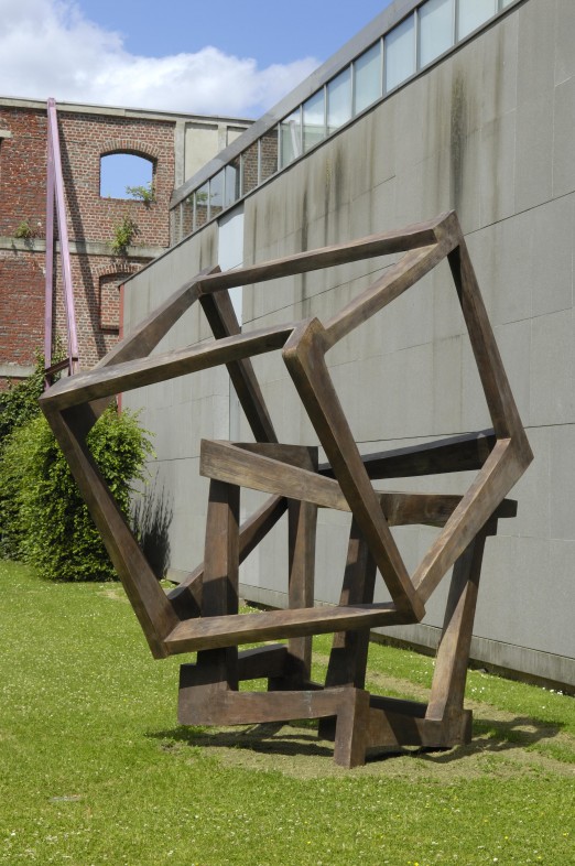 Son travail s’inscrit dans la tradition de la sculpture minimaliste américaine sans pourtant nier une proximité d’intention et de manière avec les modèles de la statuaire moderne européenne. Partant de modules cubiques en acier assemblés par soudure, Novatt décline à l’infini des solutions plastiques jouant avec l’environnement de l’oeuvre, dont la traduction monumentale en bronze, comme cet emboîtage, suggère à la fois le volume qu’elle dessine et le vide qu’elle laisse s’exprimer. L’emplacement choisi pour installer l’oeuvre offerte par un ami discret de La Piscine est ainsi un élément de relecture de l’architecture du musée, qu’elle accompagne comme un jeu de construction à la fois monumentalisé et fidèle à la sensibilité presque fragile de son modèle de départ.