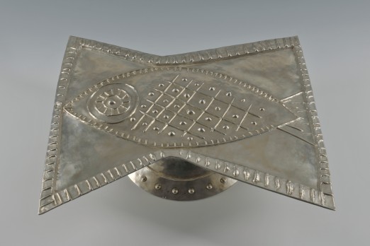 C’est à la fin des années 1950 que l’orfèvre François Hugo a, d’après des dessins originaux de Pablo Picasso et en collaboration étroite avec ce dernier, réalisé en argent fin martelé, repoussé et ciselé, une série de quatre compotiers dont la forme du plateau détermine le nom du modèle (trèfle, rond, ovale et poisson). Témoignant d’un travail longtemps resté confidentiel (chacun des quatre compotiers ne fut édité qu’à onze exemplaires), cette superbe pièce d’argenterie enrichit et compléte le fonds Picasso du musée. Elle contribue à faire mieux connaître les créations d’arts appliqués de l’artiste installé dans le Sud de la France après guerre.