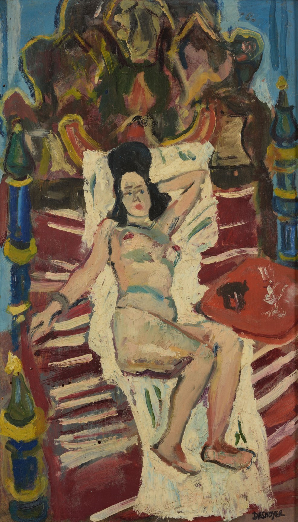 François Desnoyer (1894-1972) Le lit espagnol. Vers 1945. Huile sur bois,