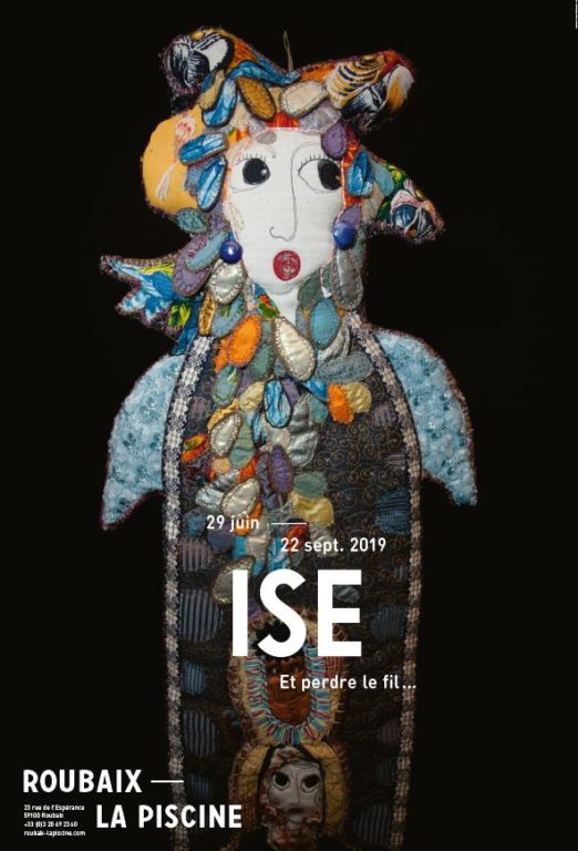 Et puis, fortuitement, des étoffes sont apparues. Cette découverte s’est muée en passion boulimique de collectionneuse esthète. Les broderies et fioritures, élaborées avec patience, opiniâtreté, rage parfois… ont donné naissance à tout un équipage onirique aux couleurs surannées. Ces appareils poétiques affirment un équilibre fragile entre humour et sacré, farce et méditation, une impression étrange d’assister à l’exhumation d’œuvres ayant appartenu à une civilisation perdue. Ise développe parallèlement un travail sur papier. Elle imprime ses dessins cousus, qui deviennent des estampes de fil. Le résultat confirme un univers en miroir…