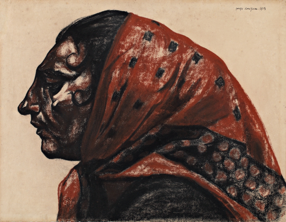 Georges Dorignac (1879-1925), Paysanne au fichu (détail), 1913, Fusain et sanguine sur papier