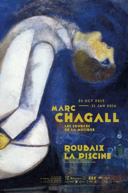 L’exposition Marc Chagall : les Sources de la Musique a reçu le soutien important de la Région Nord-Pas-de-Calais, de lille3000 dans le cadre de sa saison RENAISSANCE et d’un mécénat exceptionnel du partenaire officiel de La Piscine, le CIC Nord Ouest. L’exposition est aussi fidèlement soutenue par l’IRCEM. La scénographie est réalisée grâce au généreux concours des peintures Tollens, des moquettes Balsan et de la société Vandendriessche.