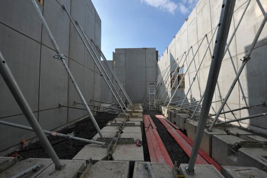 15.03.2017 Nouvelle aile Rue de l’Espérance. Installation des murs. Vue sur le patio de sculpture_DSC4536 | Oeil du chantier
