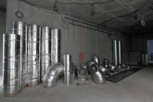 27.09.17 Nouvelle aile Rue de l’Espérance. Vue des espaces de contextualisation technique et historique de la sculpture moderne: installation des gaines de chauffage. |← Oeil du chantier