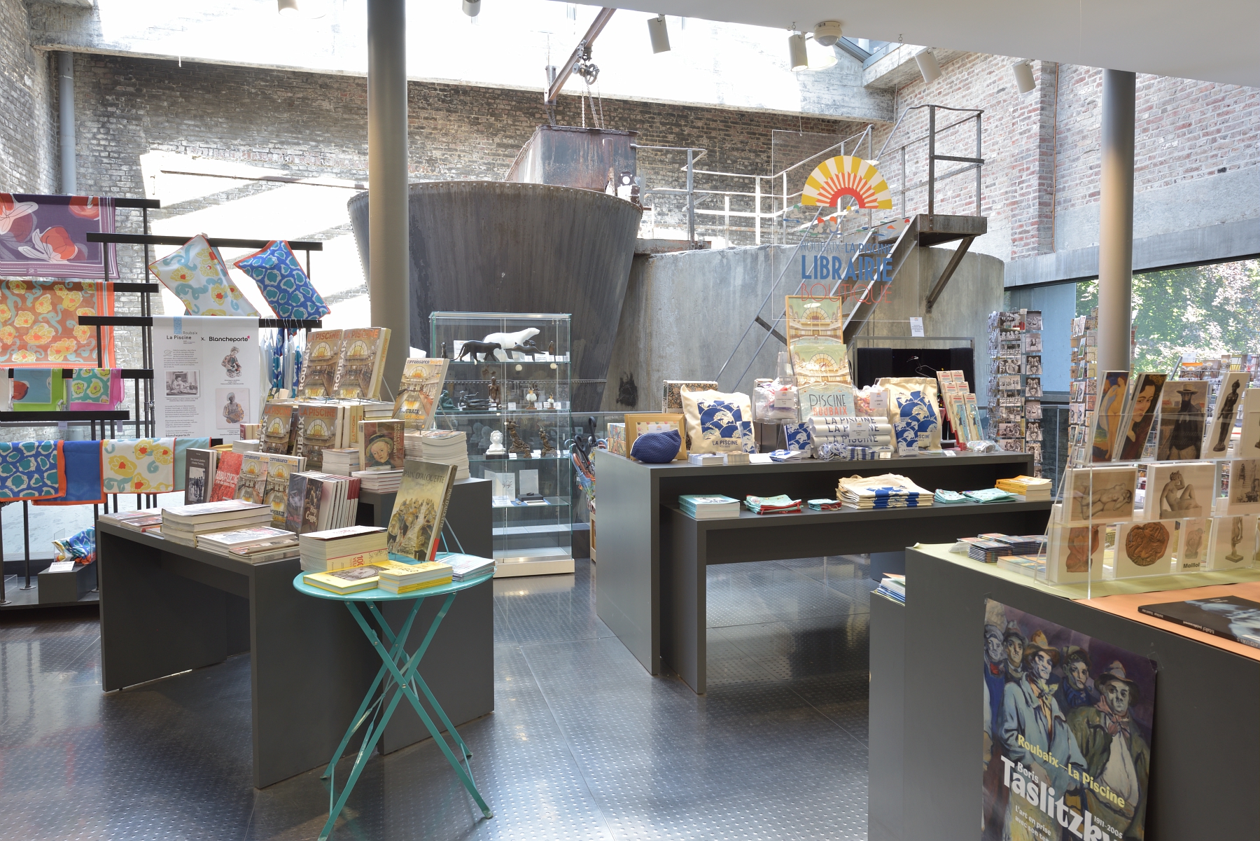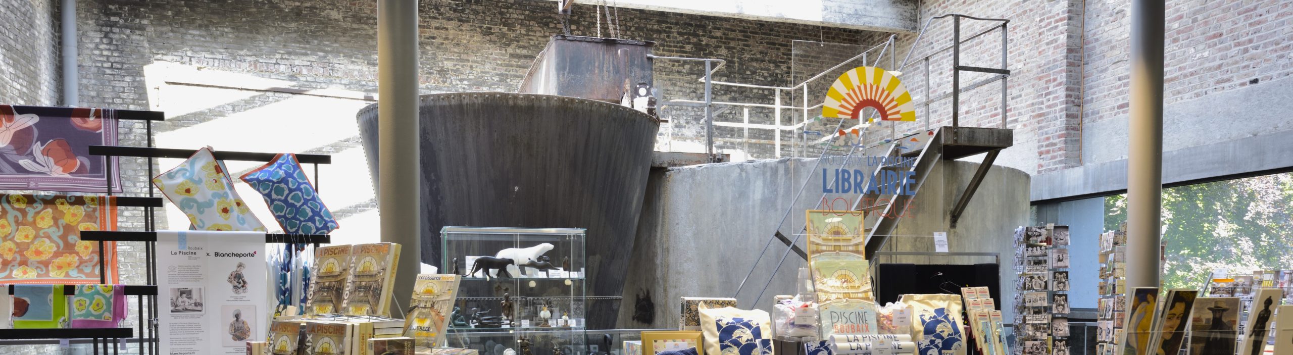 Entièrement réaménagée pour la réouverture du musée, la librairie-boutique se situe dans l’ancienne salle de filtration des eaux.