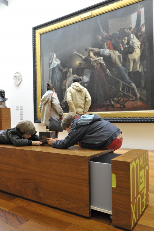Dans les bancs de certaines salles du parcours Beaux-Arts, un tiroir latéral renferme un ou plusieurs jeux, créations originales réalisées à partir des œuvres du musée. La reconstitution réelle ou imaginaire d’un portrait, la vision fragmentaire d’une œuvre par le biais d’un trou de serrure, l’assemblage de pièces de tissu pour reconstituer un costume, sont autant de manipulations et d’expériences vécues qui favorisent l’appropriation des œuvres. Ces jeux, présents en permanence dans les salles, sont libres d’accès. Lors de visite familiale, chaque visiteur trouve ainsi son intérêt et son rythme de découverte des collections.