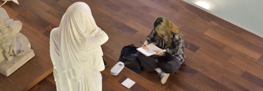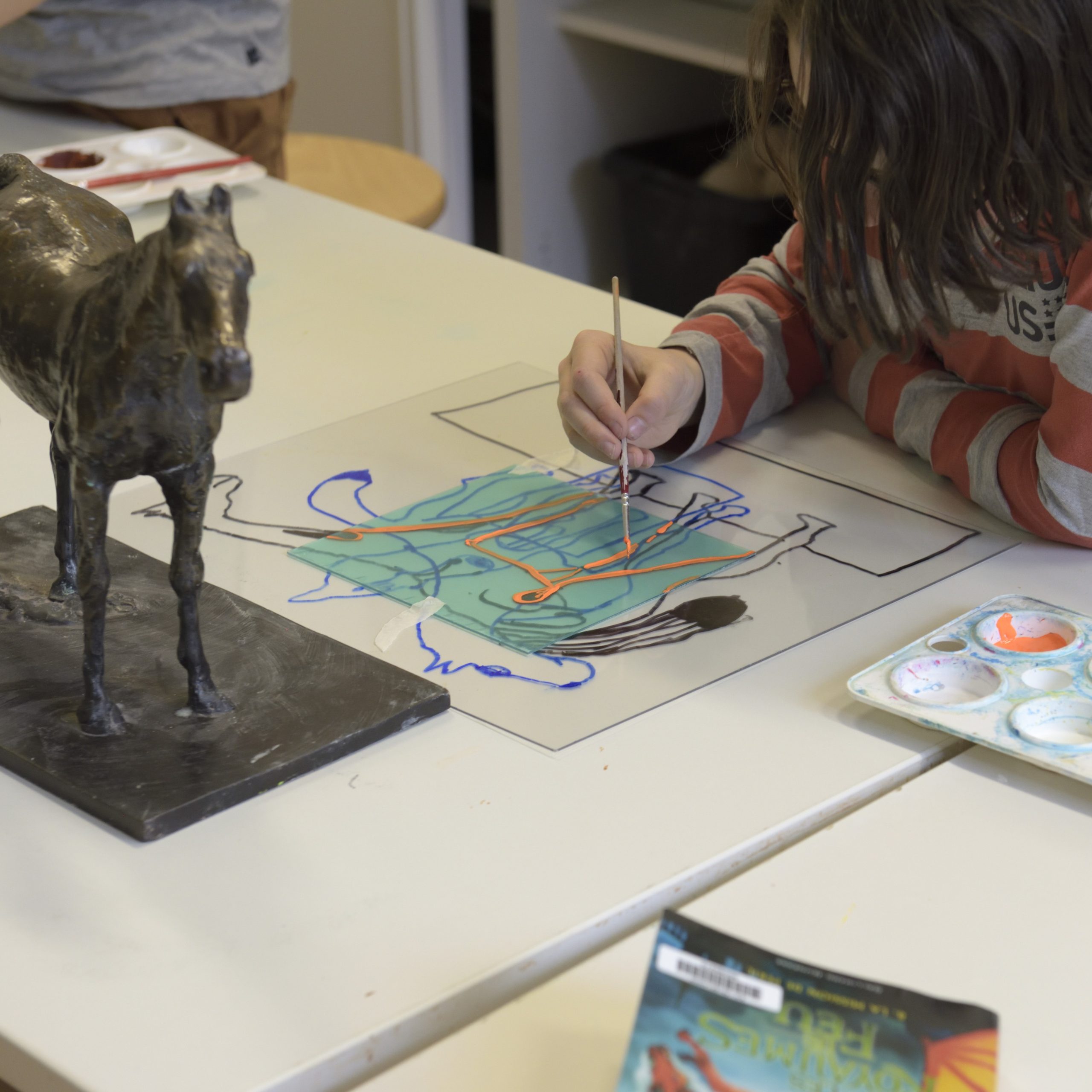 1h30, c’est le temps de l’animation. Environ 45 minutes face aux œuvres et 45 minutes en atelier pour la réalisation d’une création plastique. Les thématiques « uniquement dans les salles » se déroulent au cœur du musée.