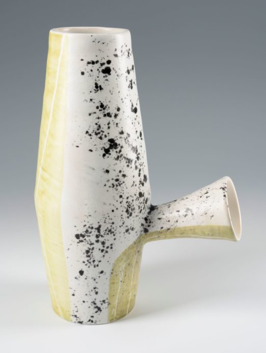 Legende: Mado Jolain (1921-2019) Vaas of Kan met handvat. 1955. Geëmailleerd keramiek, 33,5 x 24,5 cm. Diameter: 14 cm