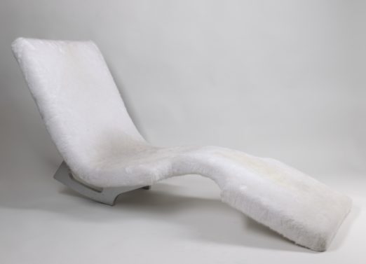 Achille MAREEL, Chaise longue, 2004, Fourrure synthétique blanche, structure en médium et métal
