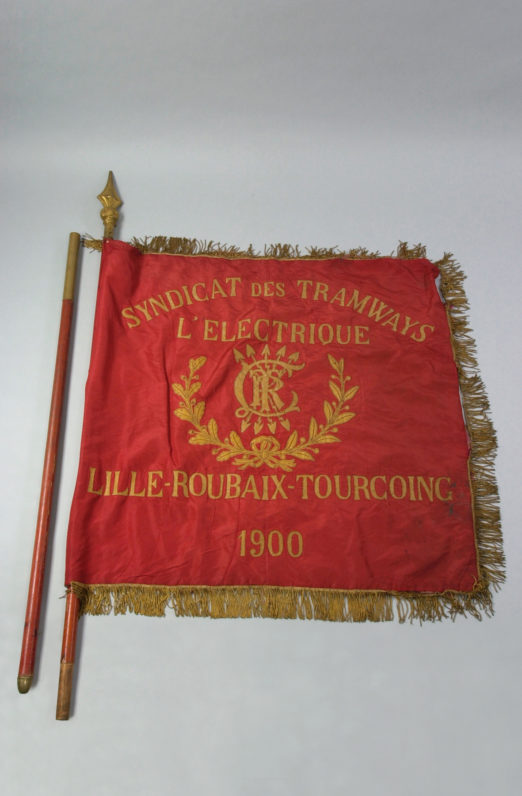 Bannière professionnelle de L’électrique, Syndicat des tramways, 1900, Coton et fil métallique