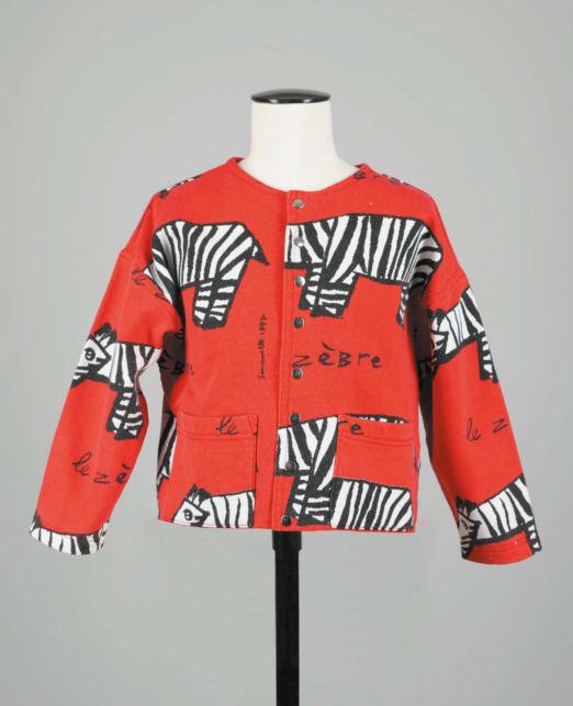Élisabeth de SENNEVILLE, Veste Le Zèbre, vers 1990, Coton imprimé, boutons, métal, Taille enfant
