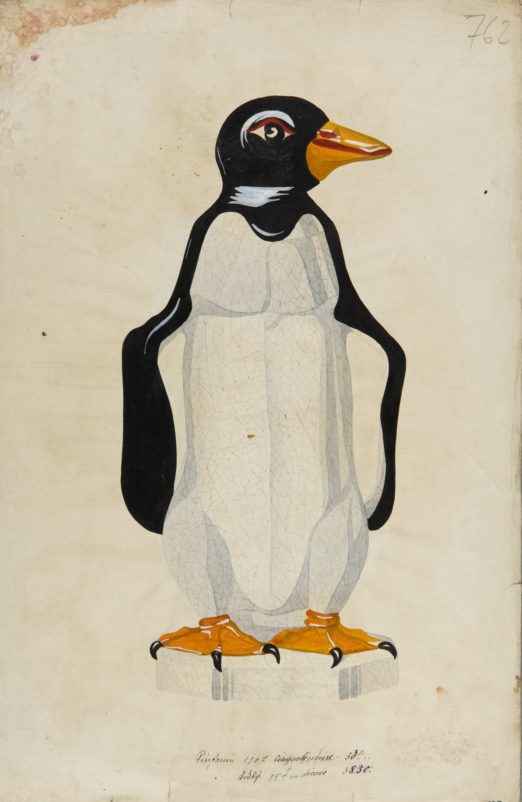 Collection Musée La Piscine Roubaix- Etude de motif pour la bonbonnière pingouin n°1307 pour une manufacture à Desvres, 1920-1930, Gouache et encre