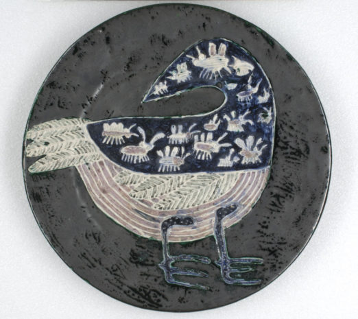 Guidette CARBONELL, Plat Oiseau avalant des mouches, vers 1949, Faïence émaillée