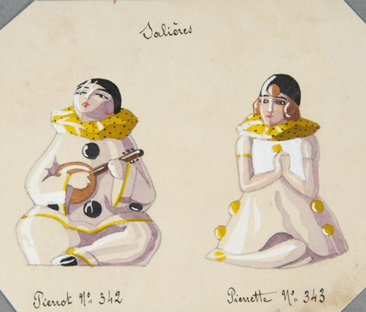 Collection Musée La Piscine Roubaix- Salière « Pierrot et Pierrette », Etude de motifs pour la manufacture de Desvres, 1920-1930, Gouache et encre
